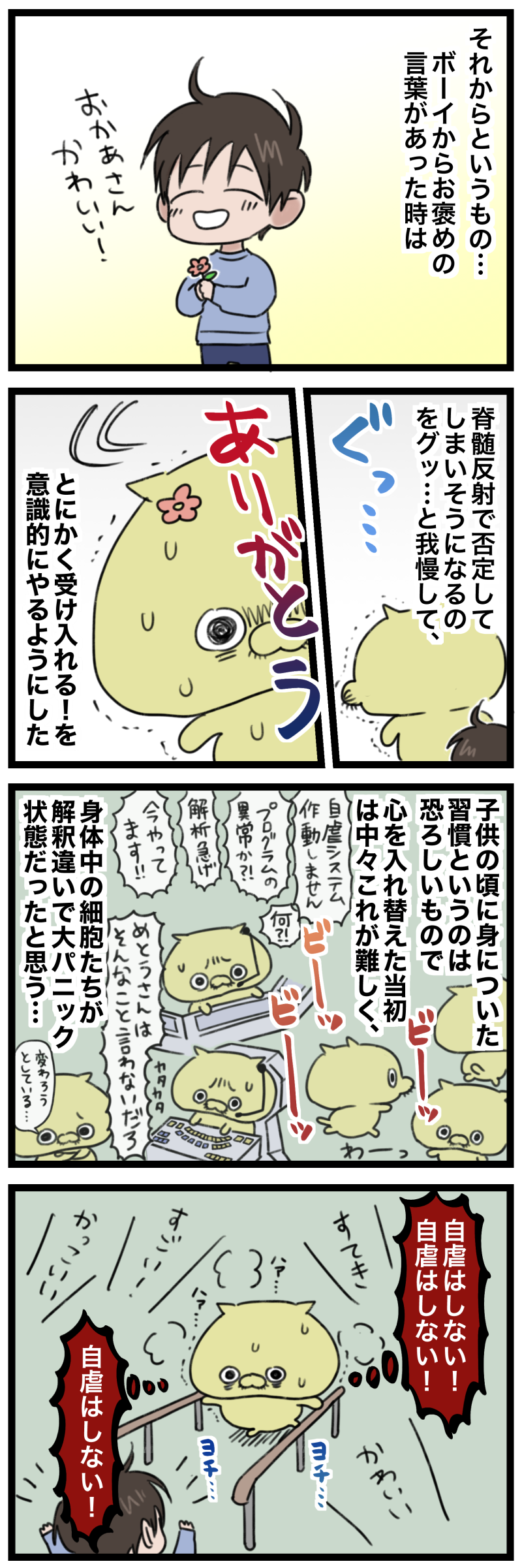 そんな時に、今現在のボーイ君を漫画で拝見し、「あぁ、大きくなって‥‥!私も今は大変だけど、子がいずれ成長してボーイ君みたいに大きくなったら、一緒にゲームしたり楽しいことを出来るはず!」と、また励ましてもらいました。