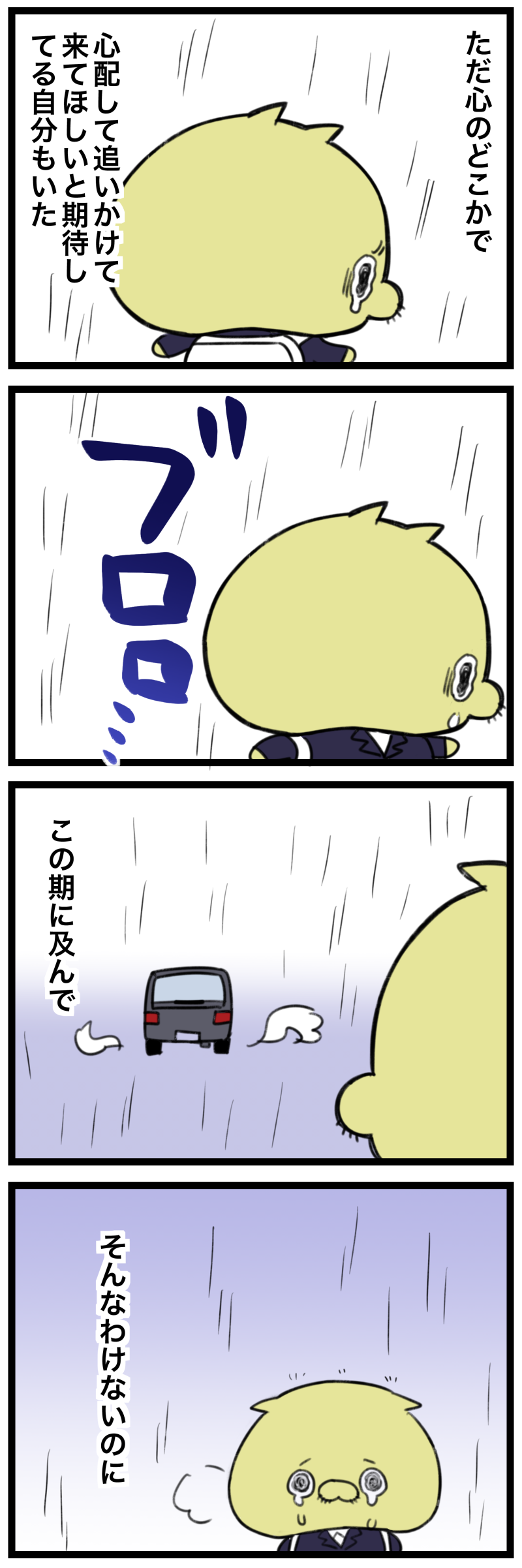 子どもの頃って、大人よりも心の痛みを比喩じゃなく本当に痛みとして感じるよね。この時のめとうさん、胸がズキズキ痛んでたんだろうな。久々にそういう感覚を思い出しました。