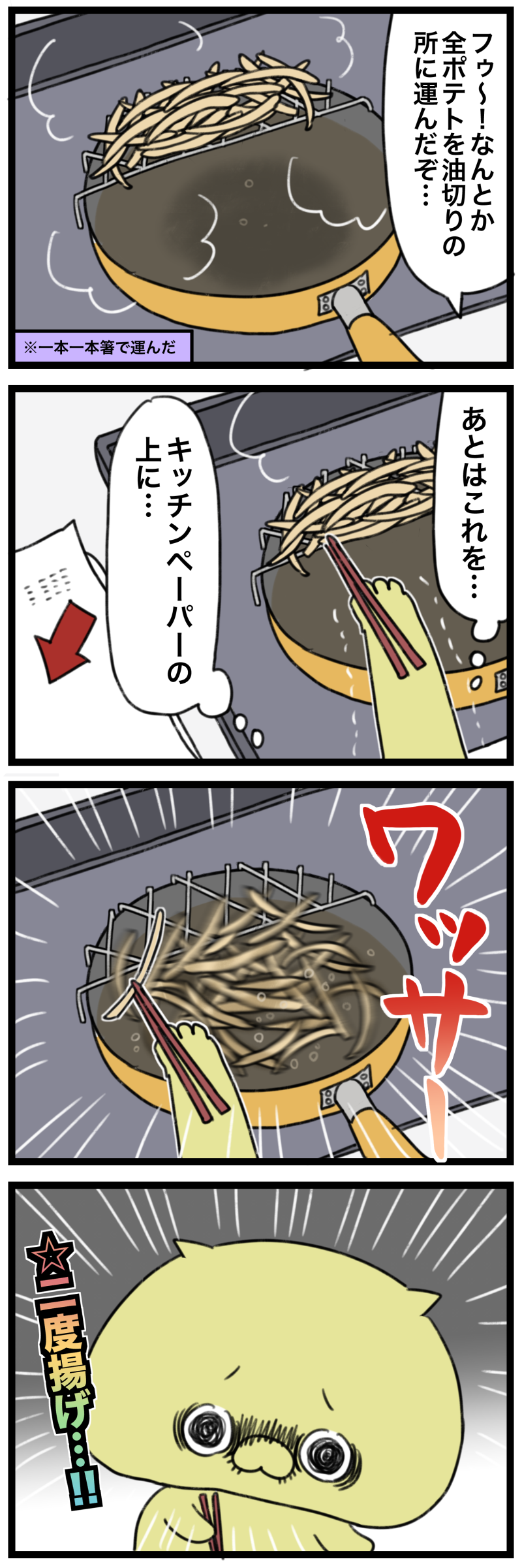 洗い物(この場合一気にすくう網)増やしたくないからおはしで1本1本、頑張ったのにね…w