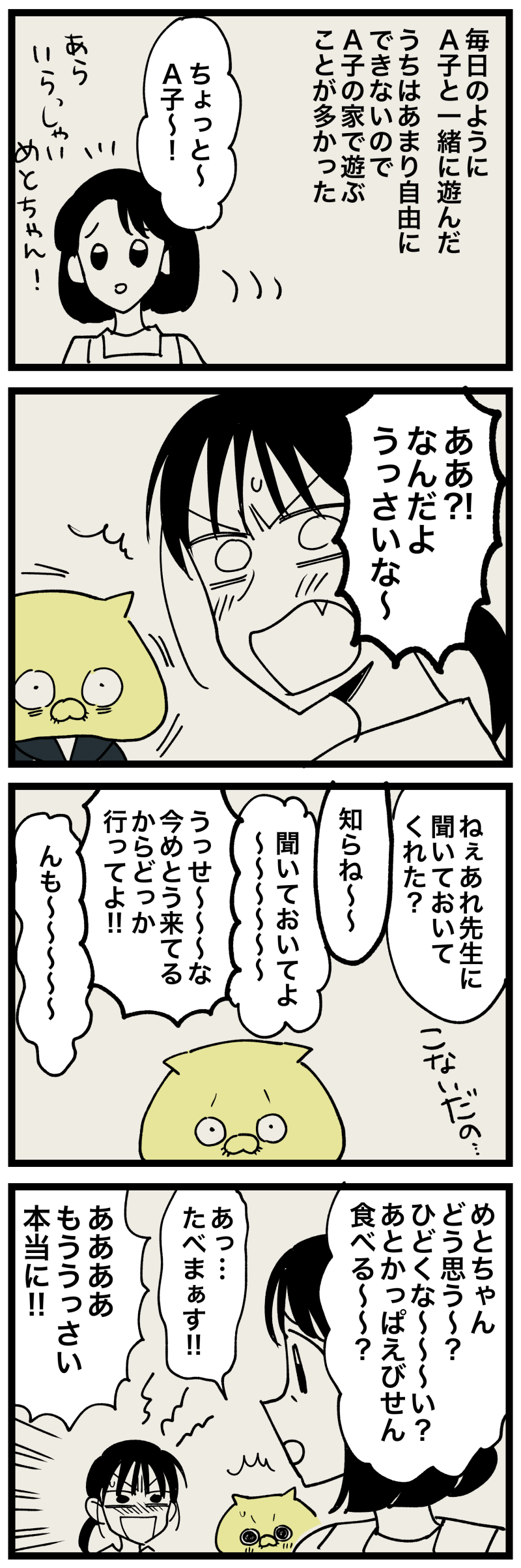 だから、A子ちゃんみたいな家庭に違和感を覚えてた。親に対しての言葉遣いや態度などダメなことはダメだと教えるべき!って。