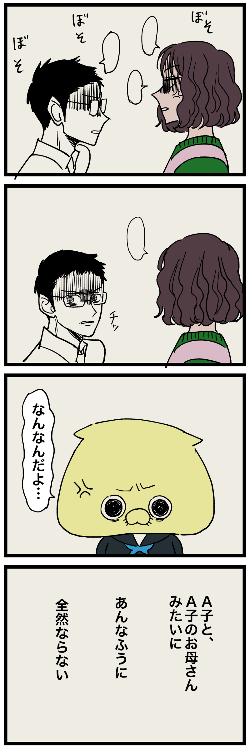 ふいっ、て顔を背けたお母さん、悲しいですね。