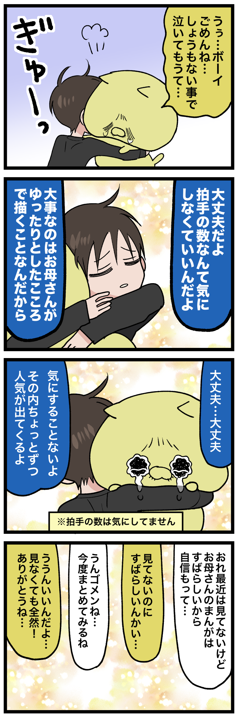 ボーイくんと同じくめとうさんが好きに描くのがいちばん大事ですから、わたしはどんな話でも読めるだけでありがたい派