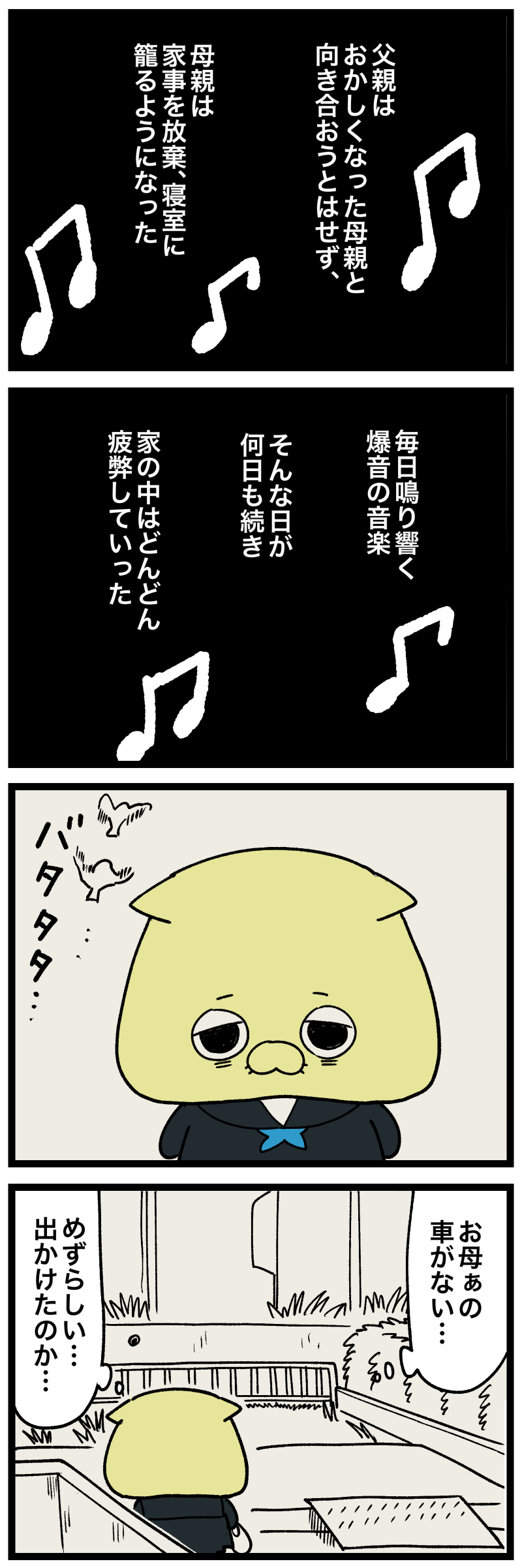 毒家族 母親と私83 -中学生編- 2024年06月13日 23:00 次⤵︎ 投票ボタンX( 旧Twitter )Instagram 「 - 毒家族 母親と私」カテゴリの最新記事 タグ :#毒親#毒家族#過去の話 < 前の記事次の記事 > コメント コメント一覧 (1) 1. たられば 2024年06月13日 23:58 めとうさんの心身の疲弊が伝わってくる… 色んなこと、みんなで分担すれば 一人ひとりの負担は小さく済むのにね めとうさん一人が家事一切を 押し付けられたわけじゃないよね…?😢 おとうさん… もう少し向き合ってくれていたら… もう少し寄り添ってくれていたら… 自分の伴侶を救わず 我が子も支えず なんか怖いですよぅ…😨 0 めとう がしました コメントフォーム 名前 コメント 記事の評価 リセット リセット 顔 星 情報を記憶 コメントを投稿する