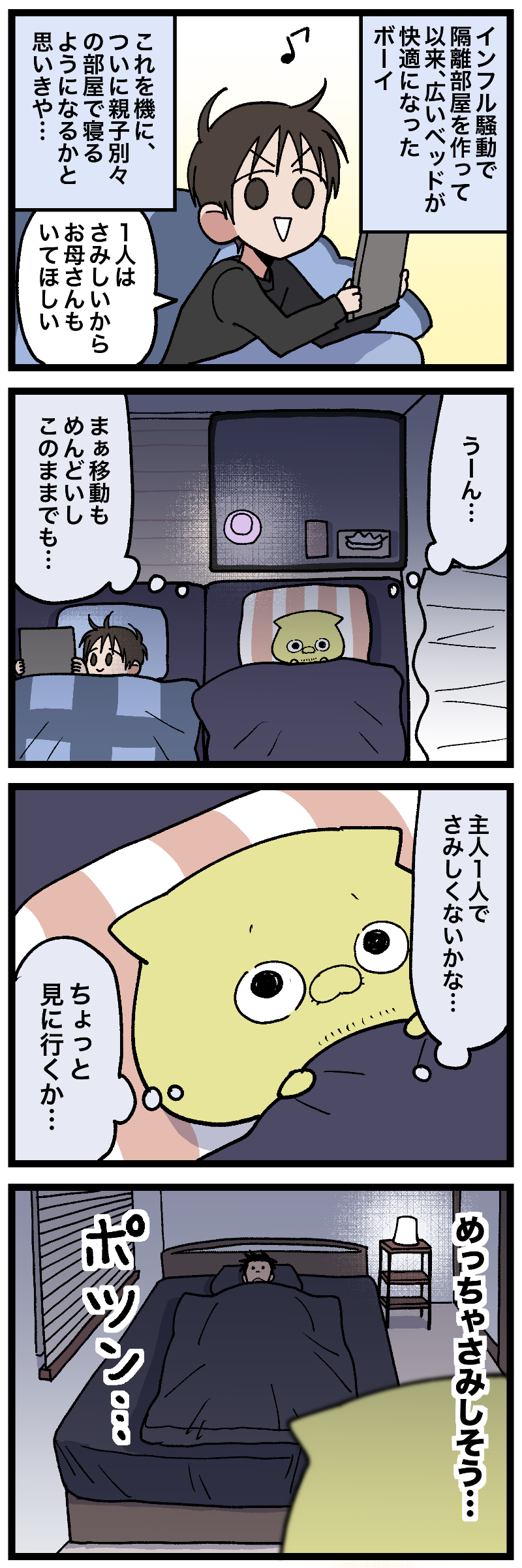 もう少しだけ川の字で寝たい親たち 2025年03月16日 23:21 ボーイと寝るのが大好き主人⤵︎ ⚠️現在スマホのみ下部にアンカー広告が出てしまっています。私の方でも調べてるんですが何をどうやっても消せない状況です。漫画が見づらい上にセンシティブな内容が多くてさぞ不快だと思います。ご迷惑おかけしてすみません。PCから閲覧いただくと解消されます。このブログが今よりもっとビッグになれば消せる部分だと思うのでもっと頑張ります。今後とも応援よろしくお願いします。🙇投票ボタン 最初から一気読みしたい人向けAmazon Kindle無料だよ! 週予定表グッズSHOPX( 旧Twitter )Instagram 「⚫︎育児」カテゴリの最新記事 タグ :#主人#ボーイ < 前の記事次の記事 > コメント コメント一覧 (2) 1. ホッコリするなぁ 2025年03月17日 07:06 自分は怖がりだから小学生卒業まで母・妹と布団並べてじゃないと寝られなかったよ 0 めとう がしました 2. かなか 2025年03月17日 20:57 ボーイの意思を尊重しようとする旦那様、本当良いパパさんだ…家族から愛されるわけですよ☺️ 0 めとう がしました コメントフォーム 名前 コメント 記事の評価 リセット リセット 顔 星 情報を記憶 コメントを投稿する