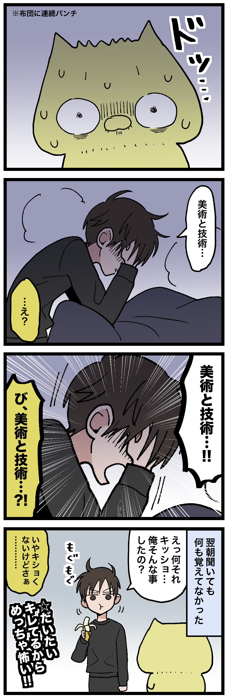 ボーイの謎の夢『美術と技術』 2025年11月09日 22:09 何か悪い夢でも見たのかね?美術と技術の ⚠️現在スマホのみ下部にアンカー広告が出てしまっています。私の方でも調べてるんですが何をどうやっても消せない状況です。漫画が見づらい上にセンシティブな内容が多くてさぞ不快だと思います。ご迷惑おかけしてすみません。PCから閲覧いただくと解消されます。このブログが今よりもっとビッグになれば消せる部分だと思うのでもっと頑張ります。今後とも応援よろしくお願いします。🙇投票ボタン 最初から一気読みしたい人向けAmazon Kindle無料だよ! 週予定表 「⚫︎家族」カテゴリの最新記事 タグ :#ボーイ < 前の記事次の記事 > コメント コメント一覧 (1) 1. 深夜2時に… 2025年11月10日 07:06 スマホ見てるw (同じですw) 一緒に寝てるの??? 仲良しすぎるー!!🩷 今度10年以上ぶりに家族旅行で、一緒に寝るのは最後かなーと思ってるので川の字満喫してきます🥹✨ 0 めとう がしました コメントフォーム 名前 コメント 記事の評価 リセット リセット 顔 星 情報を記憶 コメントを投稿する
