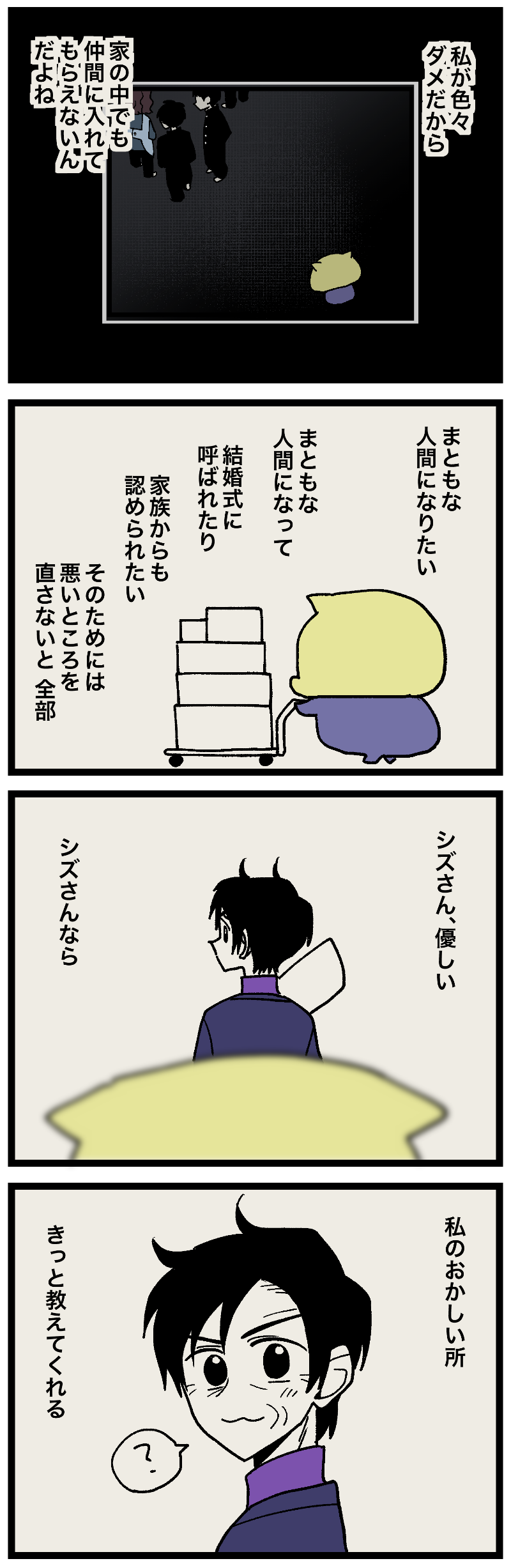 毒家族 母親と私370 -社会人編- 2025年11月10日 20:07 続⚠️現在スマホのみ下部にアンカー広告が出てしまっています。私の方でも調べてるんですが何をどうやっても消せない状況です。漫画が見づらい上にセンシティブな内容が多くてさぞ不快だと思います。ご迷惑おかけしてすみません。PCから閲覧いただくと解消されます。このブログが今よりもっとビッグになれば消せる部分だと思うのでもっと頑張ります。今後とも応援よろしくお願いします。🙇投票ボタン 最初から一気読みしたい人向けAmazon Kindle無料だよ! 週予定表 「 - 毒家族 母親と私」カテゴリの最新記事 < 前の記事次の記事 > コメント コメント一覧 (4) 1. 応援したい!という気持ちと 2025年11月10日 22:23 なんか怖い…という気持ち 二つある〜〜 0 めとう がしました 2. ポルコ 2025年11月10日 22:52 よし 0 めとう がしました 3. ぬぁぬぁーし 2025年11月10日 22:53 この先、良い方と悪い方、どっちに転ぶかハラハラしちゃう!良い方に向かって! 0 めとう がしました 4. よし 2025年11月11日 12:33 ラクさんに会えないから、気持ちを確かめようがないから、悪い方に想像してしまいますね。 めとうさんの気持ちが前に向かいはじめてる、過去のことだけど、応援してます。 0 めとう がしました コメントフォーム 名前 コメント 記事の評価 リセット リセット 顔 星 情報を記憶 コメントを投稿する