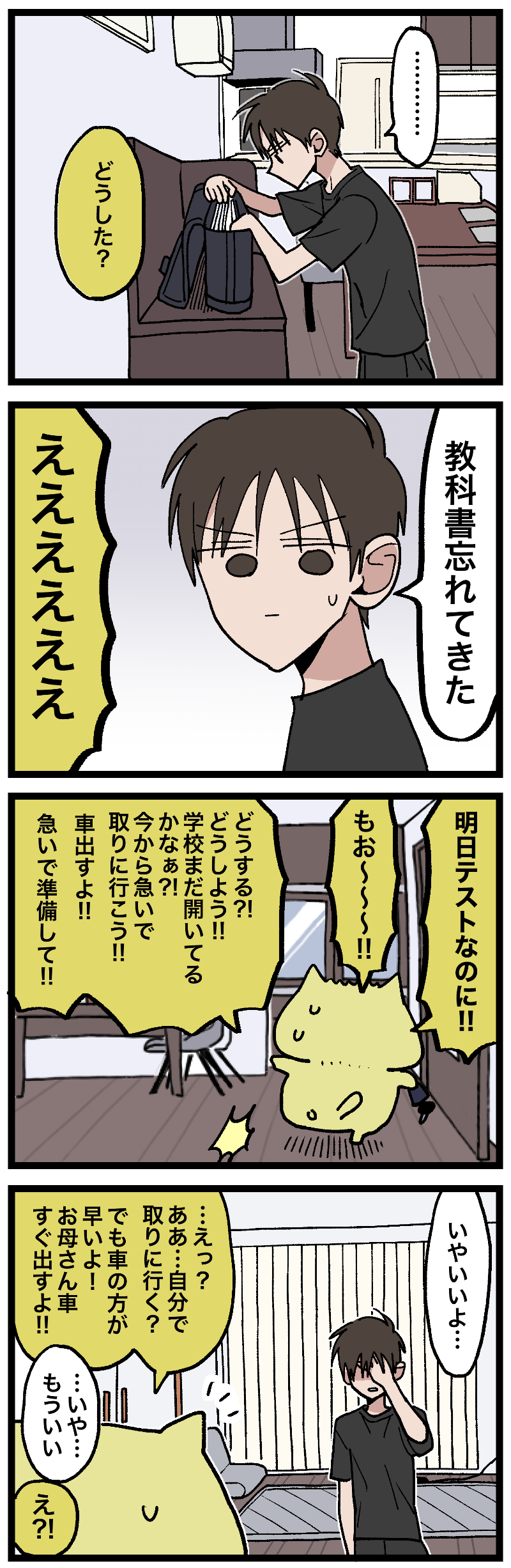 毒家族を経て今を生きる『中学生になったボーイと向き合う③』 2025年11月30日 20:26 ⚠️日常回やボーイに癒しを求めている方はすみません…閲覧注意です続く⚠️現在スマホのみ下部にアンカー広告が出てしまっています。私の方でも調べてるんですが何をどうやっても消せない状況です。漫画が見づらい上にセンシティブな内容が多くてさぞ不快だと思います。ご迷惑おかけしてすみません。PCから閲覧いただくと解消されます。このブログが今よりもっとビッグになれば消せる部分だと思うのでもっと頑張ります。今後とも応援よろしくお願いします。🙇投票ボタン 最初から一気読みしたい人向けAmazon Kindle無料だよ! 週予定表 「 - 毒家族を経て今を生きる」カテゴリの最新記事 タグ :#反抗期 < 前の記事次の記事 > コメント コメント一覧 (7) 1. 自分にイライラしてるんだよね 2025年11月30日 21:53 やらなきゃいけないのにやってないとか、やろうと思ったのに言われたとか、やろうとしたのに必要なものがなくて心配されちゃうとか、全部自分のせいだけど、しんぱいして 0 めとう がしました 2. 途中送信しちゃいました 2025年11月30日 21:56 心配してくれるお母さんに当たっちゃうんだよね! 接し方とか声の掛け方がが本当に難しい、思春期って…… 0 めとう がしました 3. なな 2025年12月01日 00:09 反抗期も成長過程って言いますよね 我が家の兄弟は反抗期ゼロのまま成人 “我慢してるんじゃないの?何で反抗期しないの?”って聞いたことがあります。 「我慢してるんじゃなくて、反抗するのって面倒だし、体力も時間も必要になる。親と仲良くしてた方がメリットが大きい」だそうです。 2才前後のイヤイヤ期もなく、、、 私自身も反抗期がなかったそうなので、そう言う家庭なのかな、、 0 めとう がしました 4. うんうん… 2025年12月01日 12:10 わかります…嫌ですよねー💧 子供のためだけど自分もイライラするし。 反抗期の男の子ならこのくらいあります✨ 腿の下に足入れて暖とっても「もっと暖めて!」って言ってくれるし、ハグもしてくれるし、反抗期だけど良い関係が築けてるってことですよね♪ 嫌な時期だから仕方ないけど大丈夫ですよ☺️ ウチも大声でケンカして取っ組み合ったことも多々あり…w ここまで言ったらダメってこともお互い言ったこともあるし…(反省) でもだんだん落ち着いてくるし今は仲良しです♪ 0 めとう がしました 5. その通り! 2025年12月01日 18:20 少なくとも私は子どもに良い点とってもらいたいです。私(親)の為ではなく自分のために。 子どもの成績が良かろうと悪かろうと正直親には関係ないけど、進学するなら行きたい所に行ってほしいと思うんです。 でもそんな気持ち伝わらないんですよね。。。 反抗期、まさしくうちもその状態なのでもどかしいですよね。 0 めとう がしました 6. むずかしい 2025年12月01日 18:59 距離感難しいですよね でも絶対いい点取った方がボーイくんのためにもなるはず.. 思ったことそのままめとうさんに言えるのも、ボーイくんがお母さんを信頼してるからなのかなと思います 0 めとう がしました 7. とくめー 2025年12月01日 23:37 ボーイ君わかってるじゃないか。 その通り! うちの息子は中2なんですが、未だにノー勉でテスト受けてます。笑 塾も中学生になってから辞めちゃうしね。 (今は別の塾に通わせてます) 困ったもんですね。 0 めとう がしました コメントフォーム 名前 コメント 記事の評価 リセット リセット 顔 星 情報を記憶 コメントを投稿する