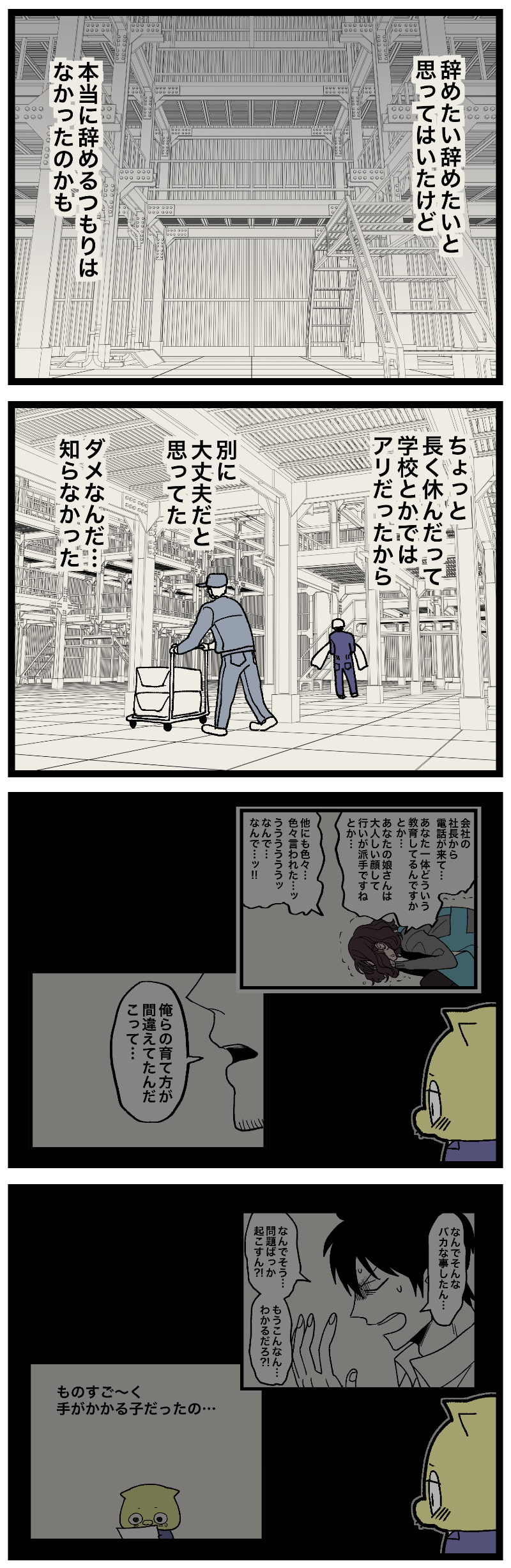 毒家族 母親と私394 -社会人編- 2025年12月22日 20:00 続⚠️現スマホのみ下部にアンカー広告が出てしまっています。私の方でも調べてるんですが何をどうやっても消せない状況です。漫画が見づらい上にセンシティブな内容が多くてさぞ不快だと思います。ご迷惑おかけしてすみません。PCから閲覧いただくと解消されます。このブログが今よりもっとビッグになれば消せる部分だと思うのでもっと頑張ります。今後とも応援よろしくお願いします。🙇投票ボタン 最初から一気読みしたい人向けAmazon Kindle無料だよ! 週予定表 「 - 毒家族 母親と私」カテゴリの最新記事 < 前の記事次の記事 > コメント コメント一覧 (1) 1. うわ! 2025年12月23日 08:20 よりによって一番会いたくないやつ! 普通って難しいよね…私も子供の頃、普通ではないと知られるのが怖くて自分の事を何も話せなかった。今でもよくわからないけど。なんだろうね、自己肯定感が低いからなんだろうか? でも、私からすればこの会社の偉い人たちも普通じゃないと思うし、結局は普通かどうかが問題なのではなくて、他の人と関わる上でどういう言動を取ったらいいのかが重要ってことで、怖くても他の人と関わりながら学んでいくしかないのかなって思ってます。 めとうさんの人生は自分にも被るとこがたくさんあって、ついつい語りたくなってしまいます。 0 めとう がしました コメントフォーム 名前 コメント 記事の評価 リセット リセット 顔 星 情報を記憶 コメントを投稿する