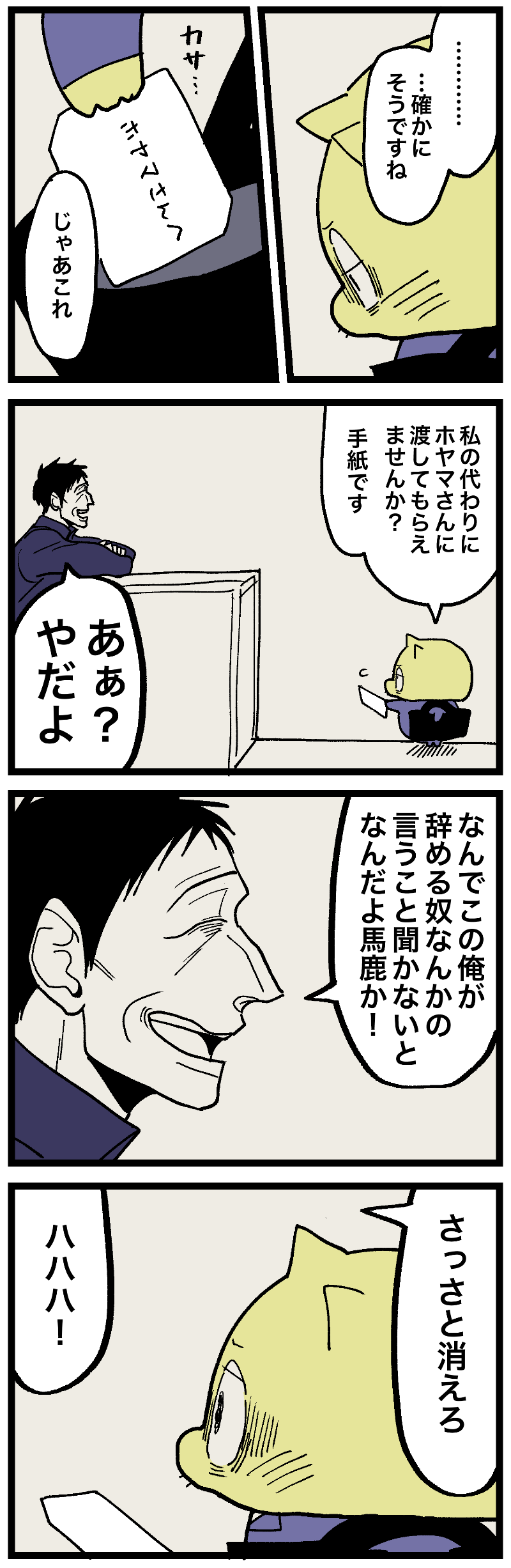 毒家族 母親と私395 -社会人編- 2025年12月23日 20:08 続⚠️現スマホのみ下部にアンカー広告が出てしまっています。私の方でも調べてるんですが何をどうやっても消せない状況です。漫画が見づらい上にセンシティブな内容が多くてさぞ不快だと思います。ご迷惑おかけしてすみません。PCから閲覧いただくと解消されます。このブログが今よりもっとビッグになれば消せる部分だと思うのでもっと頑張ります。今後とも応援よろしくお願いします。🙇投票ボタン 最初から一気読みしたい人向けAmazon Kindle無料だよ! 週予定表 「 - 毒家族 母親と私」カテゴリの最新記事 < 前の記事次の記事 > コメント コメント一覧 (10) 1. 肉美 2025年12月23日 20:16 ここでわたくしが机をちゃぶ台返し~ (こんな人ほんまにおるんですね…) 0 めとう がしました 2. 最後まで 2025年12月23日 20:50 本当に嫌なオヤジだ… 嫌なオヤジに腹壊す魔法かけちゃる! めとうさんそんなオヤジじゃなくて事務のお姉さんにお手紙渡してもらおう! 0 めとう がしました 3. ( ºДº) 2025年12月23日 21:22 お世話になりましたって言えて偉かったね!!! 今回こサボり続けた事は本当に良くないけど、こんなヤツにもそれが言えたのは成長してるってことだよね☆ それもこんな内容を言われた後に。 こういうヤツは絶対にどこかでめちゃくそ悔しい思いやこっぴどく恥ずかしい思いをさせてやりたいわ。 0 めとう がしました 4. ああ 2025年12月23日 21:34 今頃人手不足で苦しんでそう 0 めとう がしました 5. こっちこそ 2025年12月23日 23:23 辞めたからお前なんか上司でもなんでもないわ。 ホシヤマさんに用があるだけだから関係ないお前はとっとと消えろ! と過激な事を心の中で思ってしまってごめんなさい…。 0 めとう がしました 6. 作画に憎らしさがよく出てる 2025年12月23日 23:32 自分より立場の弱い人間にしか強く当たれない、哀れな大人ですねぇ ここまで振り切れて嫌な奴だと、信頼して裏切られることもないから憎々しさメーターが振り切れていっそ清々しい……? いい顔して口でもいいこと言って、信頼してたのに裏ではボロクソに言われてたとかは人間不信になっちゃいますから…… こんな嫌な職場&嫌な奴にいつまでもコキ使われなくて良かったです!(いい人もいたけど……) 人生の幾多ある分かれ道の時、実は良いほうを取れるってめとうさんには生命力の底力ありって感じですね 0 めとう がしました 7. えーと 2025年12月24日 00:39 この職場は今でもあるのかな?超ブラックで潰れてそうだけど…こういう所ほど残るのかな… 0 めとう がしました 8. コイツに 2025年12月24日 00:56 天罰下れ! 何回めとうさんを傷付けたら気が済むんだ!! 0 めとう がしました 9. 大切なものを 2025年12月24日 08:11 そんな奴になぜ簡単に託そうとする?! 隠れて破り捨てられるの想像できるじゃんー😭 (昔の話だから 今言っても仕方ないけど) そこは頑張って自分で渡して欲しい 0 めとう がしました 10. 名無し 2025年12月24日 17:53 お手紙の折り方が懐かしいやつ! ホヤマさんに渡せるといいねぇ… 0 めとう がしました コメントフォーム 名前 コメント 記事の評価 リセット リセット 顔 星 情報を記憶 コメントを投稿する